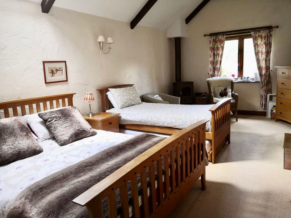 The barn sleeps 4; it has a king-sized bed and two singles, perfect for couples and small families. It is spacious, lovely and charming, with a small seating area and woodburner (logs provided), tea/coffee making facilities, TV/DVD, Wi-Fi and large ensuite bathroom.